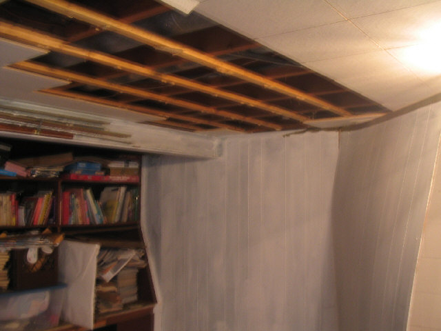 Boy, it's a lot of work demolishing stuff! I had dust and mold in my hair, all over my clothes and basically everywhere. I stepped on nails (thank goodness for thick-soled shoes!) and got whacked in the head with trim pieces.